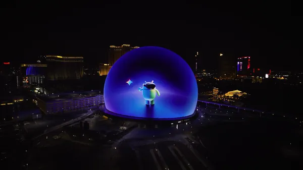 During CES 2026, Sphere in Las Vegas is lit up with an Android XR animation.